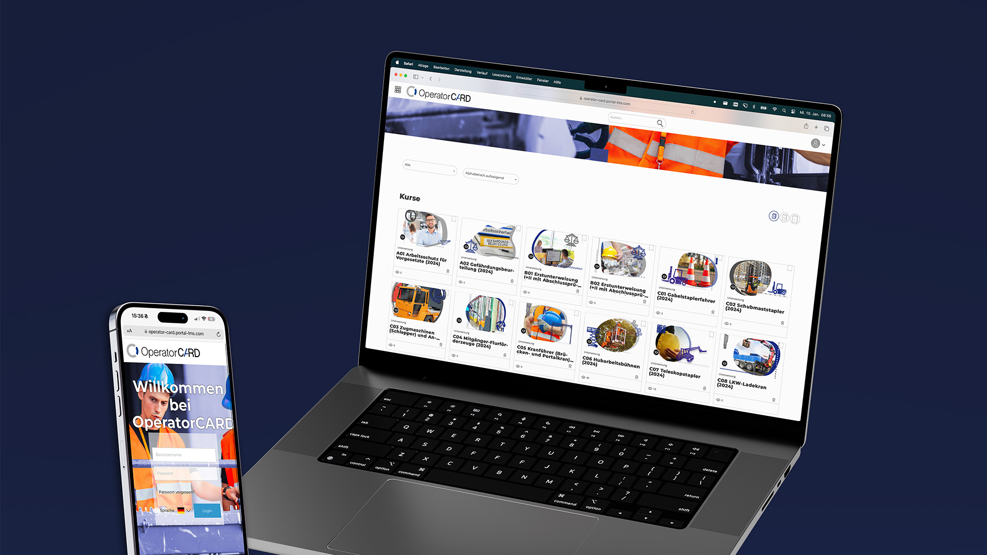 Das OperatorCARD Portal erleichtert Ihnen die Verwaltung und Dokumentation Ihrer Mitarbeiter und deren Schulungsstand – 100 Prozent digital, schnell und fast ohne Verwaltungsaufwand. In unserem Portal haben Sie alles fest im Blick: vom Einsehen sämtlicher Zertifikate zur Erfüllung der arbeitssicherheitstechnischen Pflichten bis zur Übersicht der anstehenden Schulungstermine.